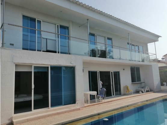 PRIMER PISO : SALA , COMEDOR , COCINA TIPO AMERICANO, AREA DE STAR , AREA DE BAR , BAÑO SOCIAL, CUARTO DE ROPAS CON LAVADERO Y AREA PARA LAVADORA, CUARTO DEPOSITO, AREA DE SERVICIO DE GAS Y ELEMENTOS PARA LA PISCINA, 2 HABITACIONES CON CLOSETS Y BAÑO PRIVADO CADA UNA , TODO EL PISO EN PORCELANATO Y CON AIRES ACONDICIONADOS Y VENTALIDADORES. PISCINA GRANDE CON JACUZZI Y ALUMBRADO, PISO ANTIDESLIZANTE, BAÑO EXTERIOR (PARA EL AREA DE PISCINA CON DUCHA, LAVAMANOS, SANITARIO). AREA PARA PARQUEO DE VEHICULOS.
